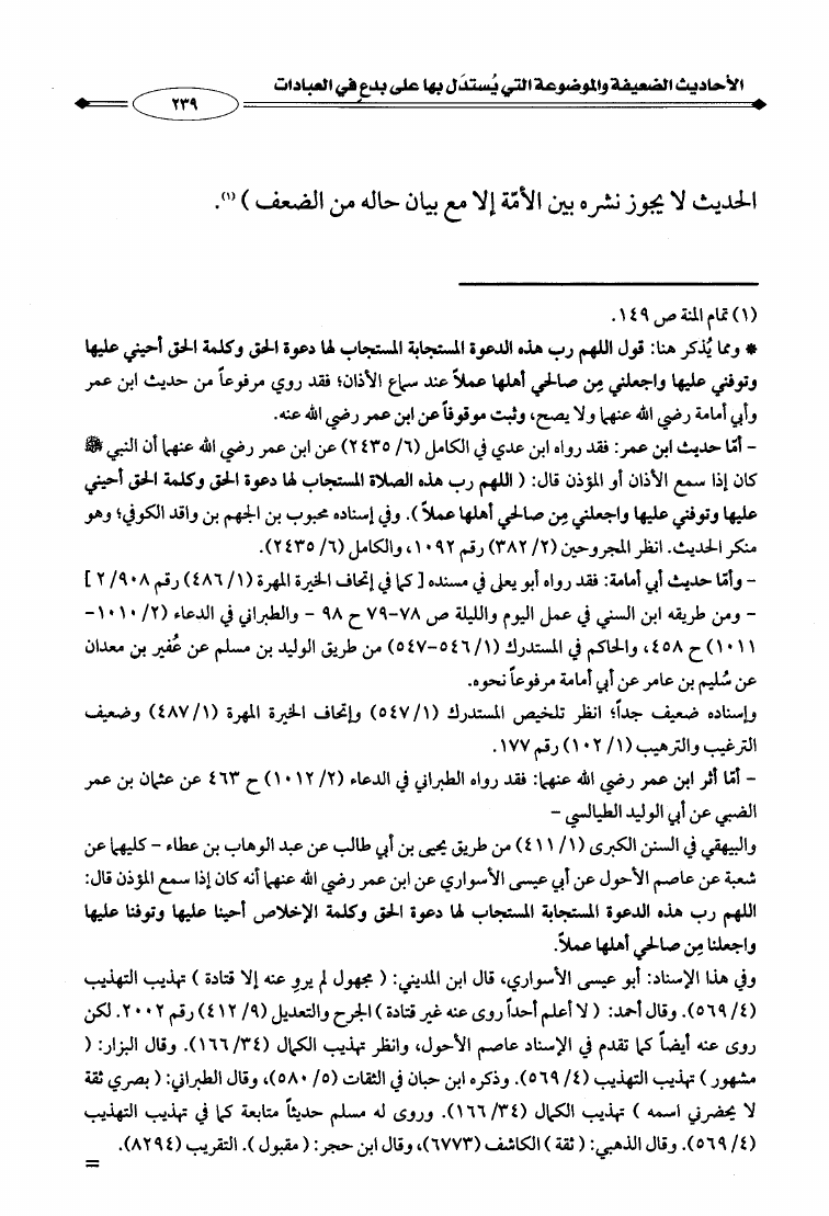 الأحاديث الضعيفة والموضوعة التي يستدل بها على بدع العبادات