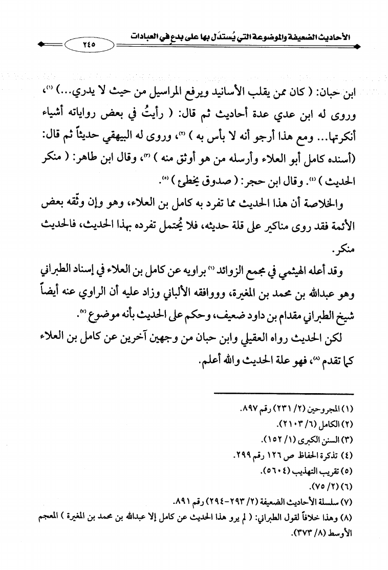 الأحاديث الضعيفة والموضوعة التي يستدل بها على بدع العبادات