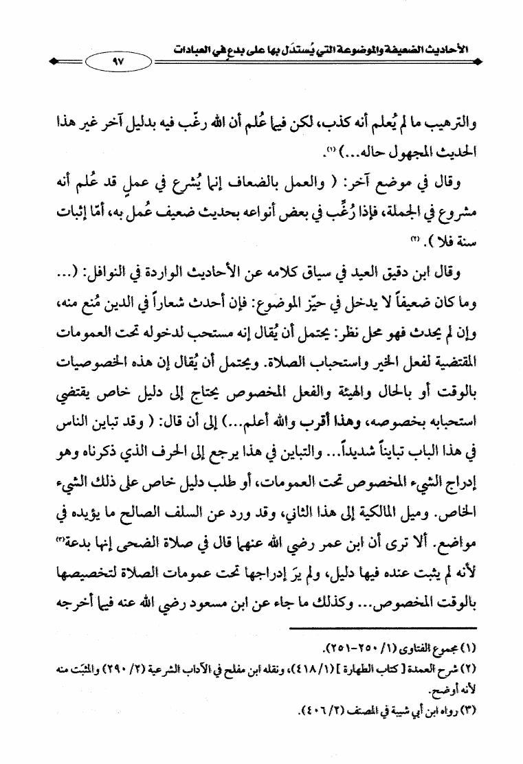 الأحاديث الضعيفة والموضوعة التي يستدل بها على بدع العبادات
