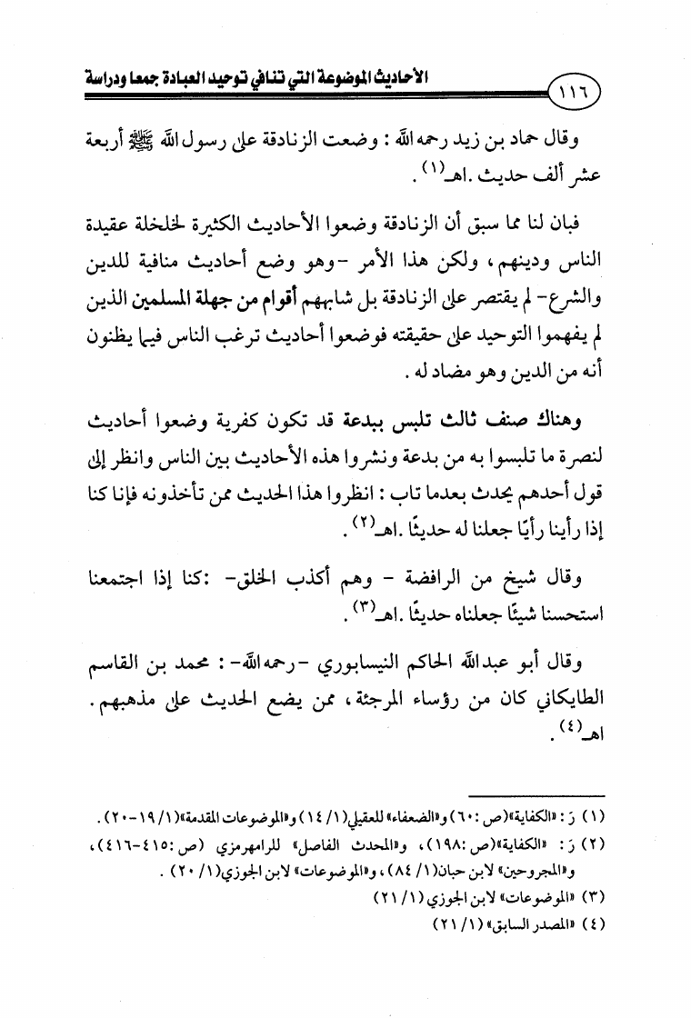 الأحاديث الموضوعة التي تنافي توحيد العبادة جمعا ودراسة