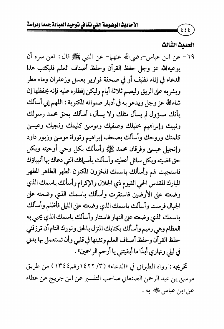 الأحاديث الموضوعة التي تنافي توحيد العبادة جمعا ودراسة