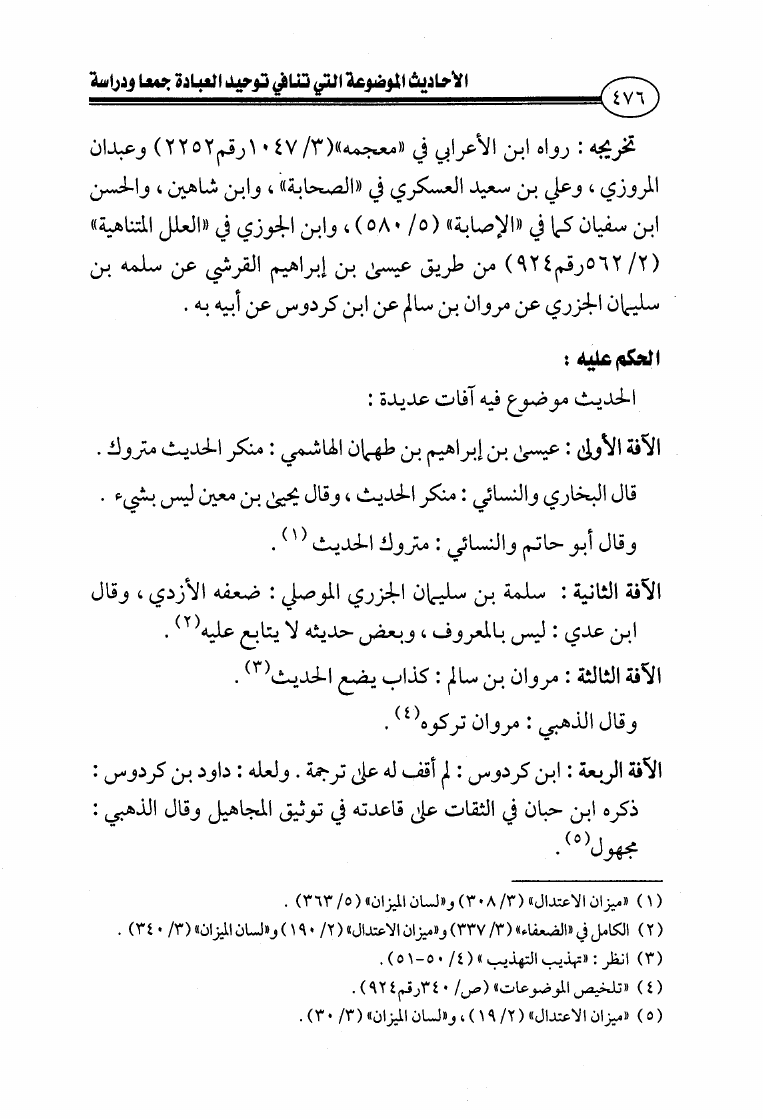 الأحاديث الموضوعة التي تنافي توحيد العبادة جمعا ودراسة