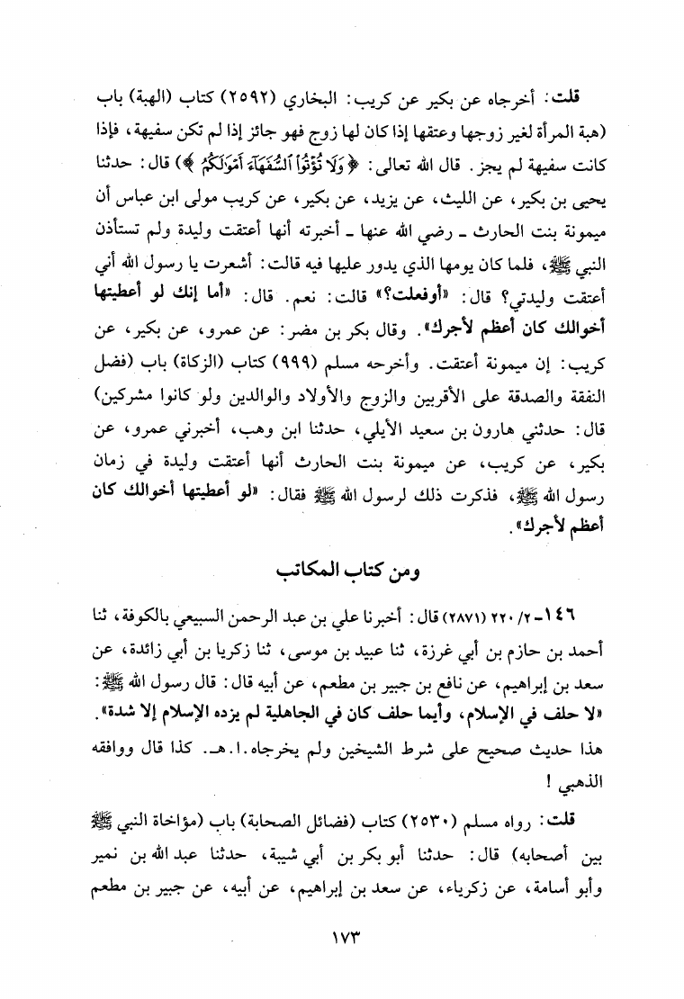 الانتباه لما قال الحاكم ولم يخرجاه وهو في أحدهما أو روياه (ط. الأوقاف القطرية)