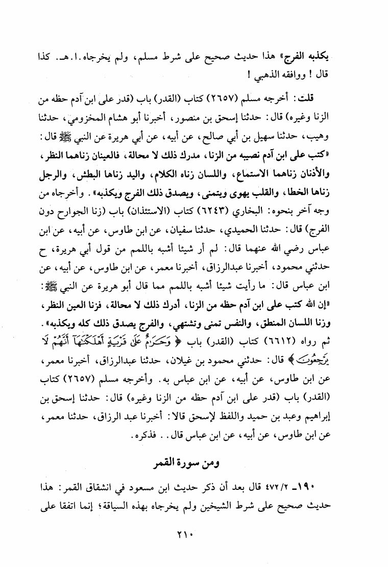 الانتباه لما قال الحاكم ولم يخرجاه وهو في أحدهما أو روياه (ط. الأوقاف القطرية)