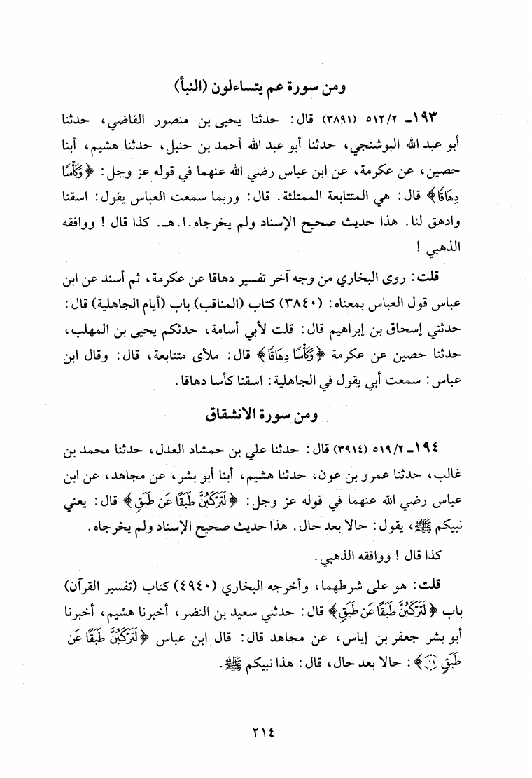 الانتباه لما قال الحاكم ولم يخرجاه وهو في أحدهما أو روياه (ط. الأوقاف القطرية)