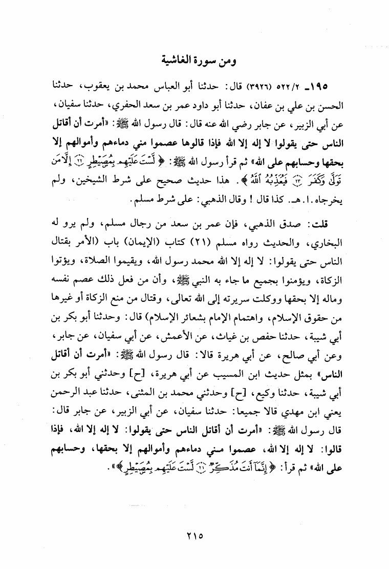 الانتباه لما قال الحاكم ولم يخرجاه وهو في أحدهما أو روياه (ط. الأوقاف القطرية)