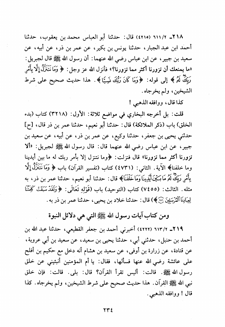 الانتباه لما قال الحاكم ولم يخرجاه وهو في أحدهما أو روياه (ط. الأوقاف القطرية)
