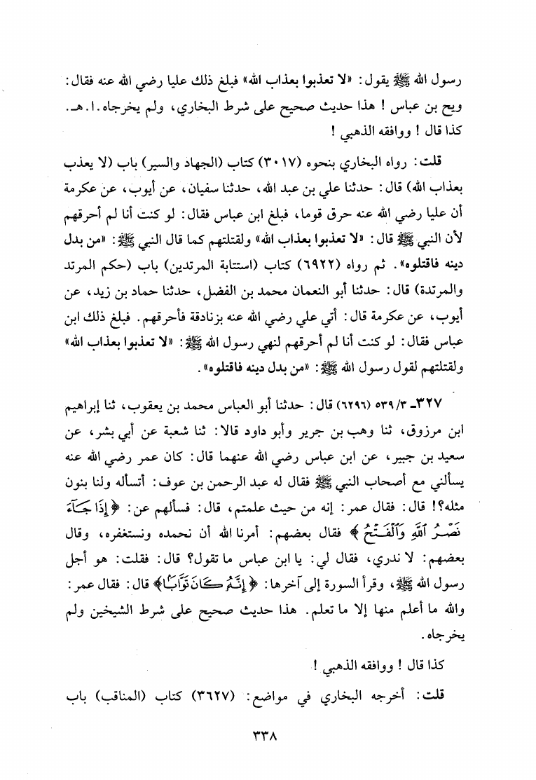 الانتباه لما قال الحاكم ولم يخرجاه وهو في أحدهما أو روياه (ط. الأوقاف القطرية)