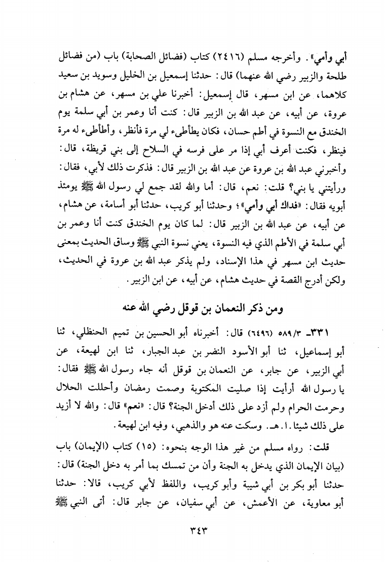 الانتباه لما قال الحاكم ولم يخرجاه وهو في أحدهما أو روياه (ط. الأوقاف القطرية)