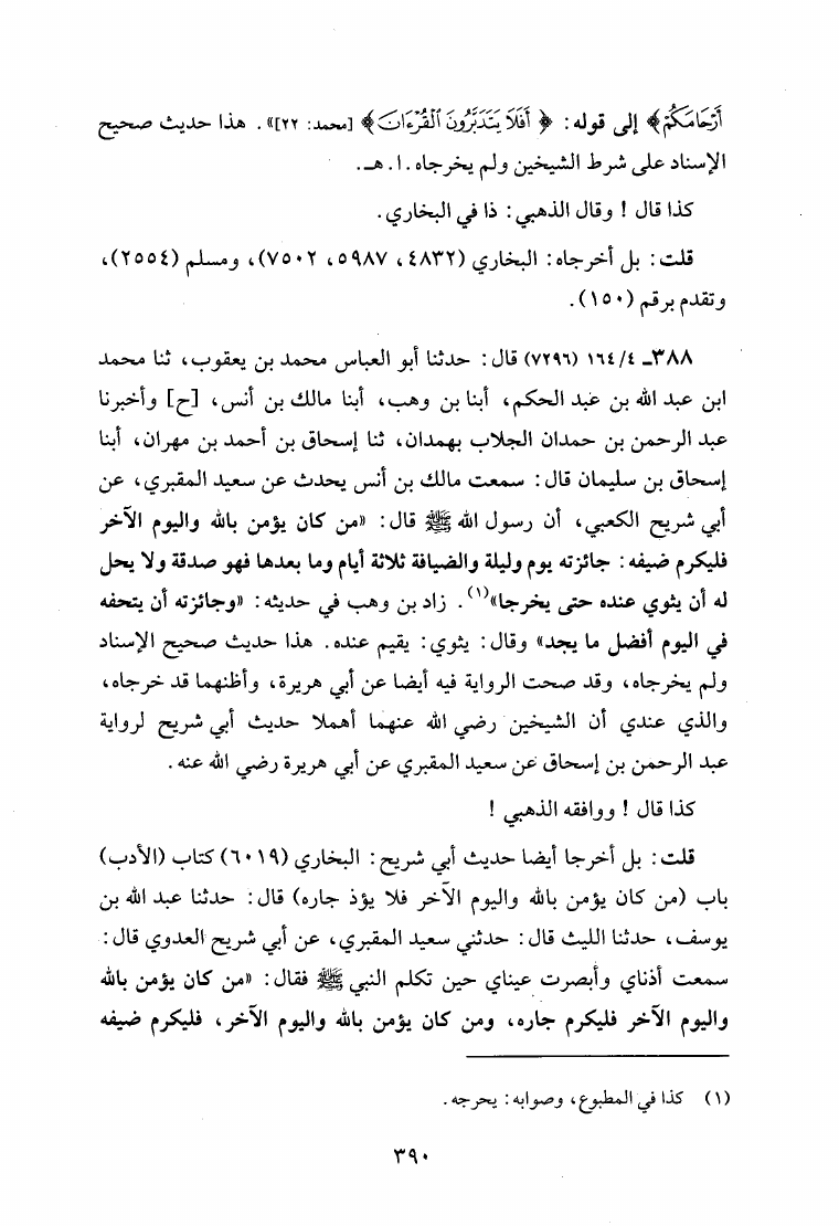الانتباه لما قال الحاكم ولم يخرجاه وهو في أحدهما أو روياه (ط. الأوقاف القطرية)