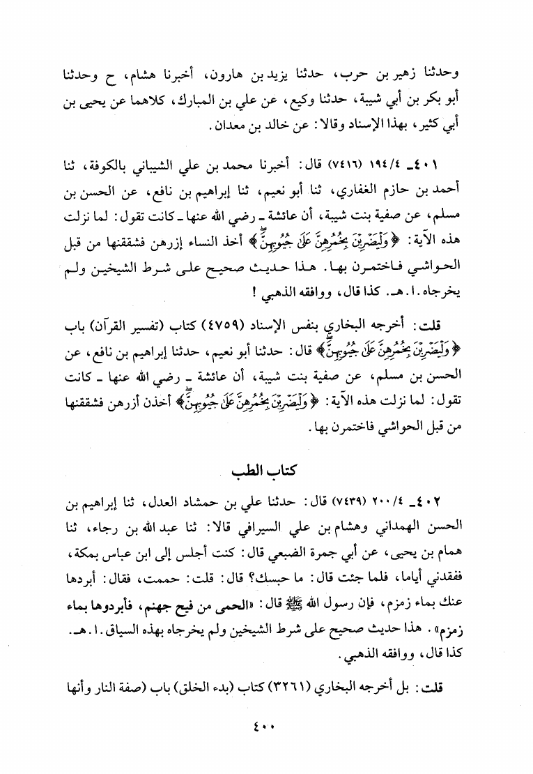 الانتباه لما قال الحاكم ولم يخرجاه وهو في أحدهما أو روياه (ط. الأوقاف القطرية)