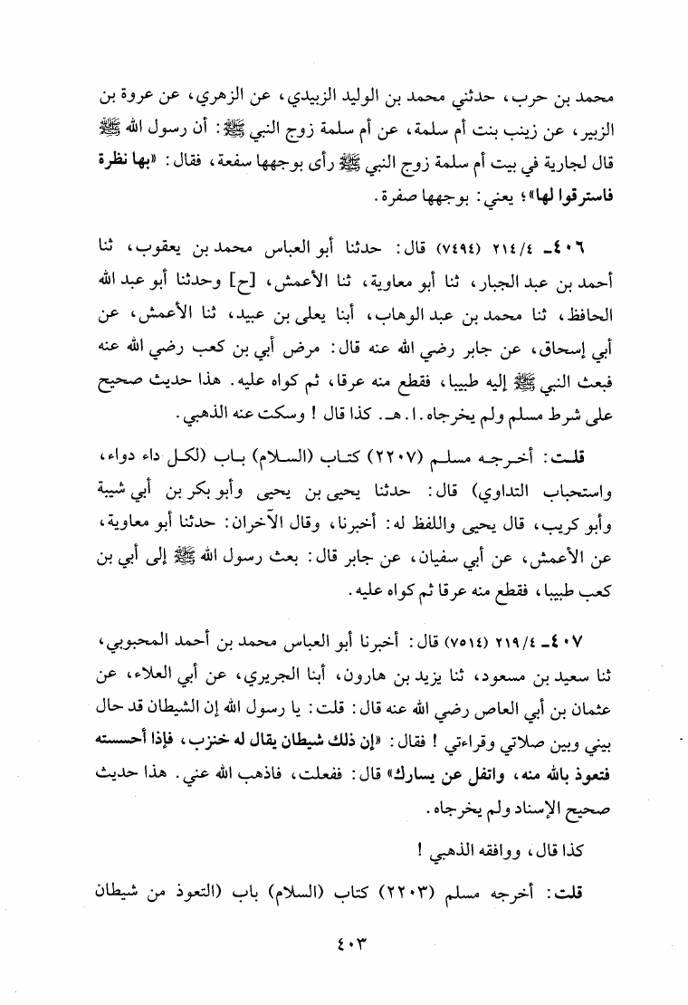 الانتباه لما قال الحاكم ولم يخرجاه وهو في أحدهما أو روياه (ط. الأوقاف القطرية)