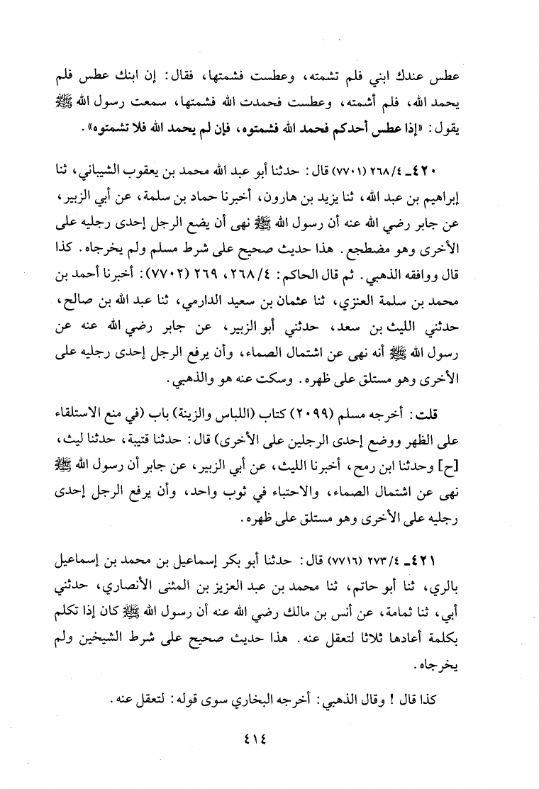 الانتباه لما قال الحاكم ولم يخرجاه وهو في أحدهما أو روياه (ط. الأوقاف القطرية)