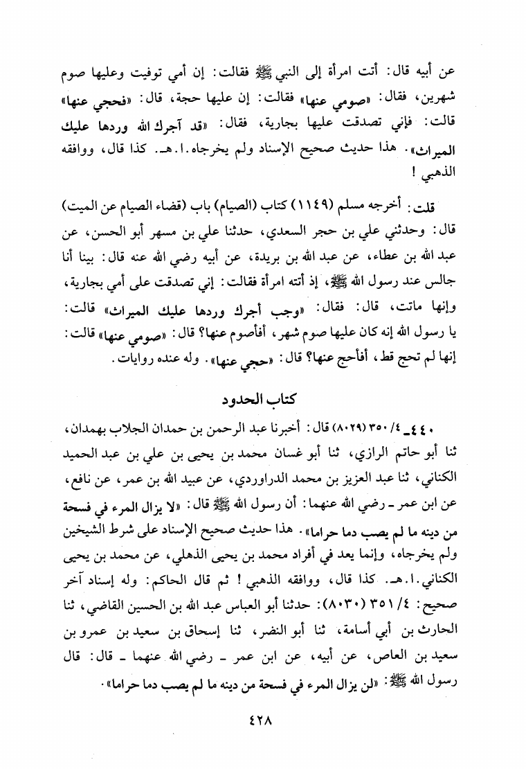 الانتباه لما قال الحاكم ولم يخرجاه وهو في أحدهما أو روياه (ط. الأوقاف القطرية)