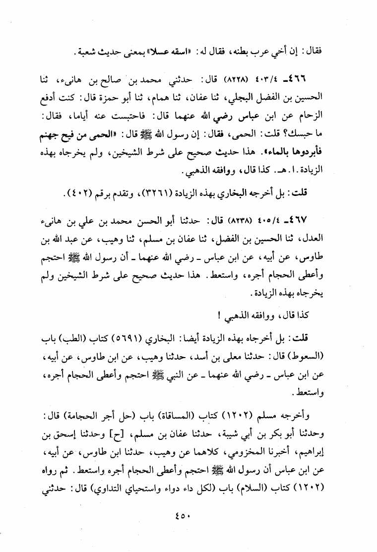 الانتباه لما قال الحاكم ولم يخرجاه وهو في أحدهما أو روياه (ط. الأوقاف القطرية)