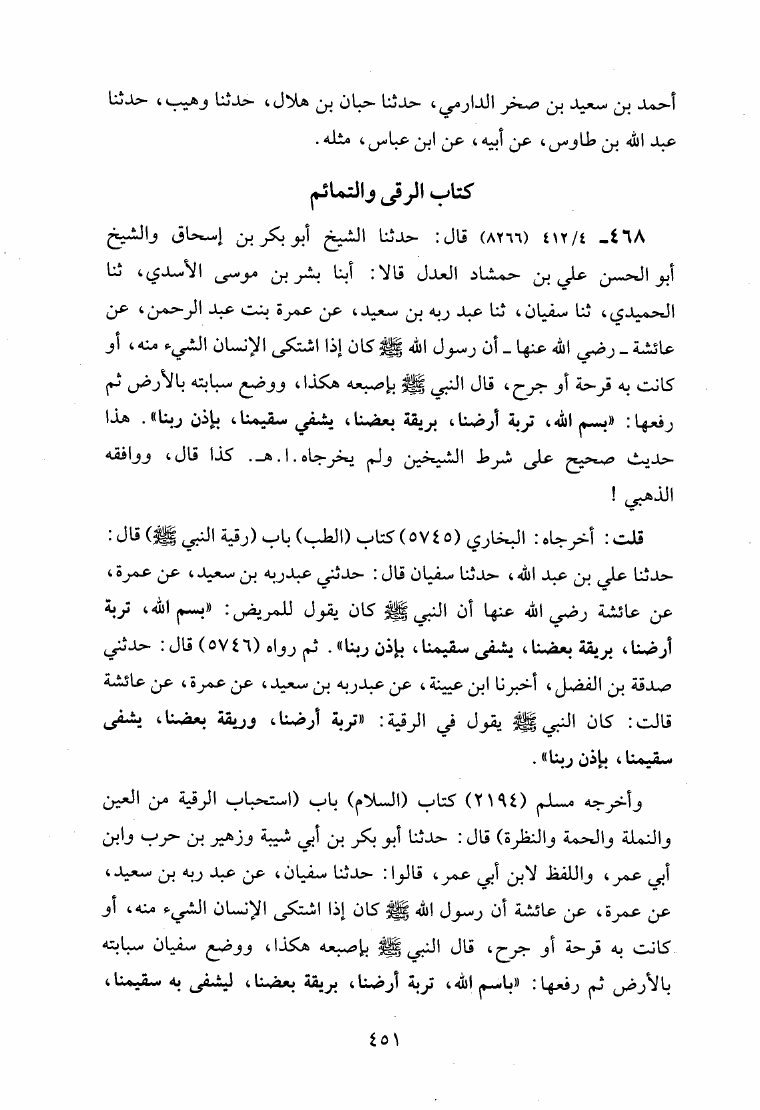 الانتباه لما قال الحاكم ولم يخرجاه وهو في أحدهما أو روياه (ط. الأوقاف القطرية)