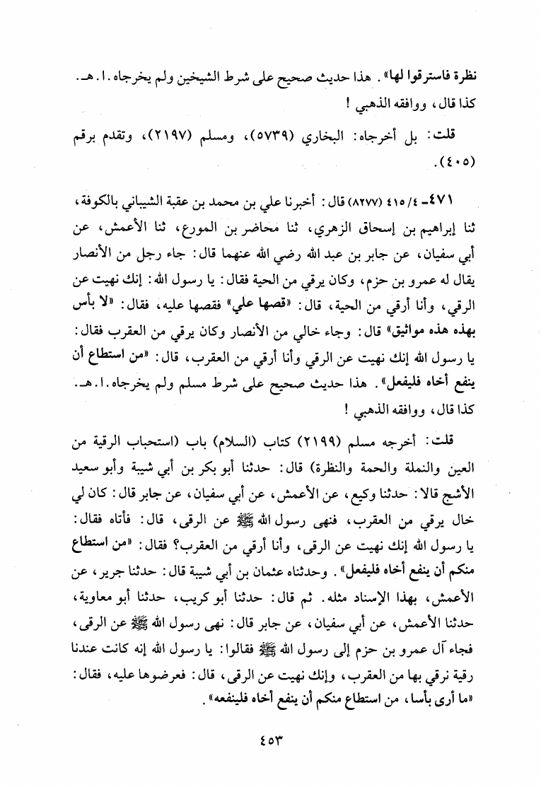 الانتباه لما قال الحاكم ولم يخرجاه وهو في أحدهما أو روياه (ط. الأوقاف القطرية)