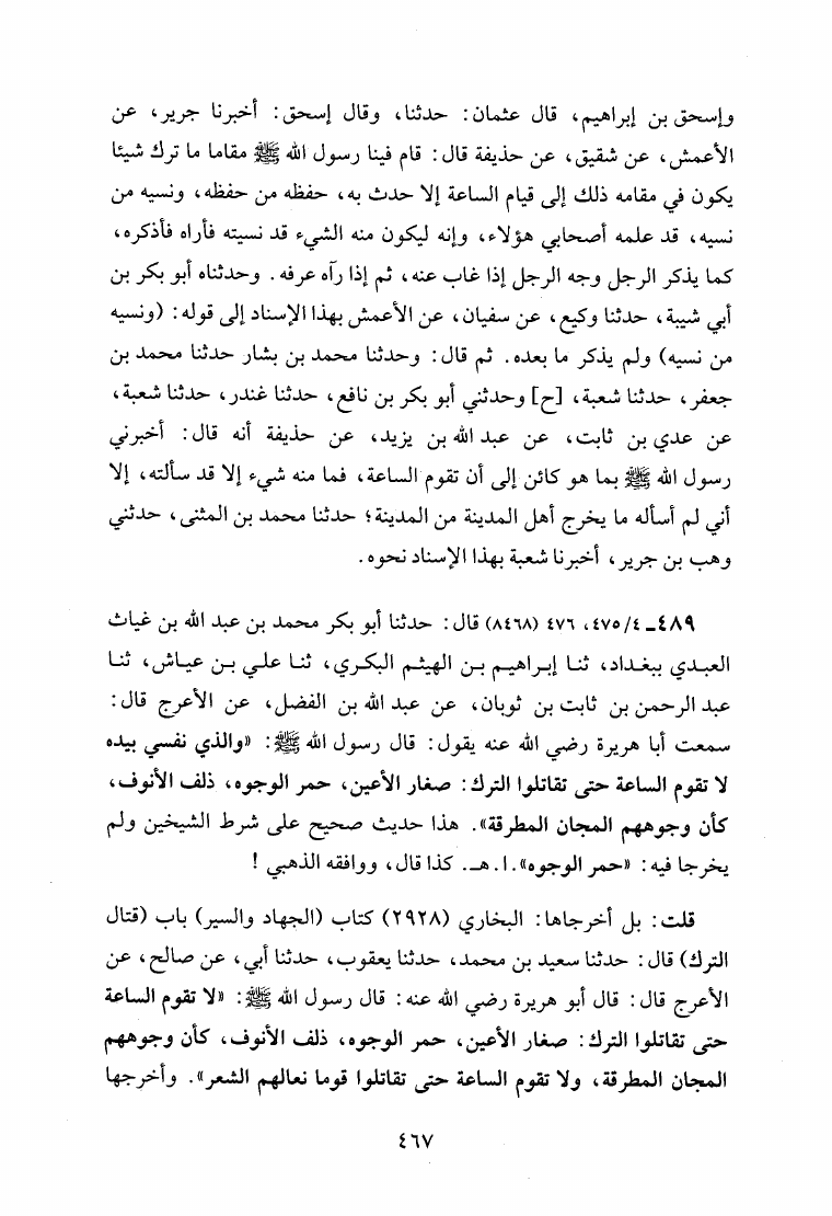 الانتباه لما قال الحاكم ولم يخرجاه وهو في أحدهما أو روياه (ط. الأوقاف القطرية)