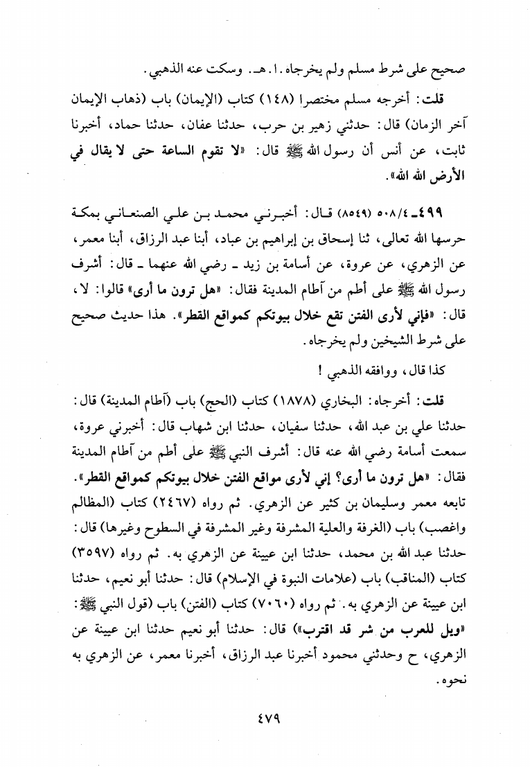 الانتباه لما قال الحاكم ولم يخرجاه وهو في أحدهما أو روياه (ط. الأوقاف القطرية)