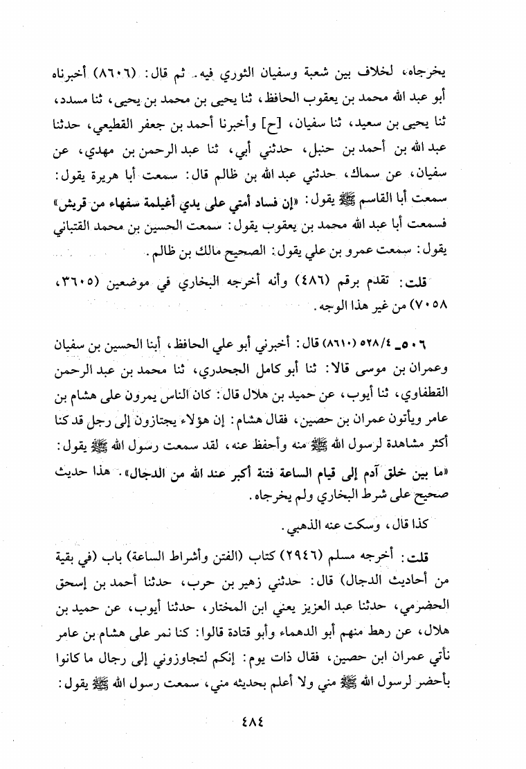 الانتباه لما قال الحاكم ولم يخرجاه وهو في أحدهما أو روياه (ط. الأوقاف القطرية)