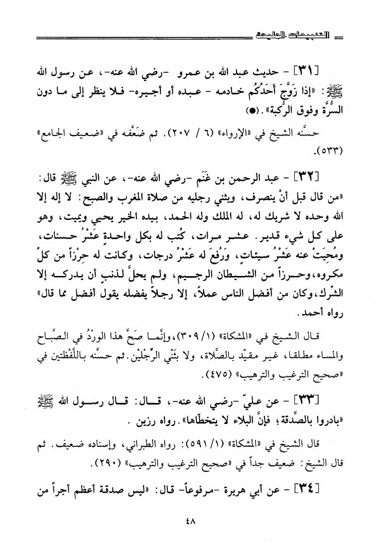 نام کتاب : التنبيهات المليحة على ما تراجع عنه العلامة المحدث الألباني من الأحاديث الضعيفة أو الصحيحة نویسنده : عبد الباسط بن يوسف الغريب جلد : 1 صفحه : 48