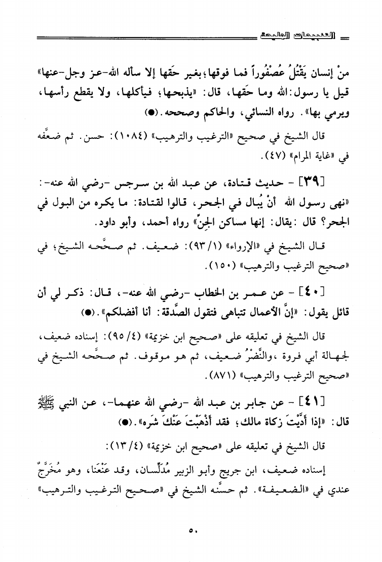 نام کتاب : التنبيهات المليحة على ما تراجع عنه العلامة المحدث الألباني من الأحاديث الضعيفة أو الصحيحة نویسنده : عبد الباسط بن يوسف الغريب جلد : 1 صفحه : 50