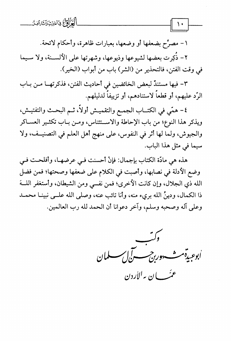 نام کتاب : العراق في أحاديث وآثار الفتن وفي آخره دراسة تأصيلية لظاهرة إسقاط الفتن على الوقائع وتقويم الدراسات الحديثة التي خاضت في ذلك وبيان مزالقها وانحرافها نویسنده : مشهور بن حسن آل سلمان ابو عبيدة جلد : 1 صفحه : 10