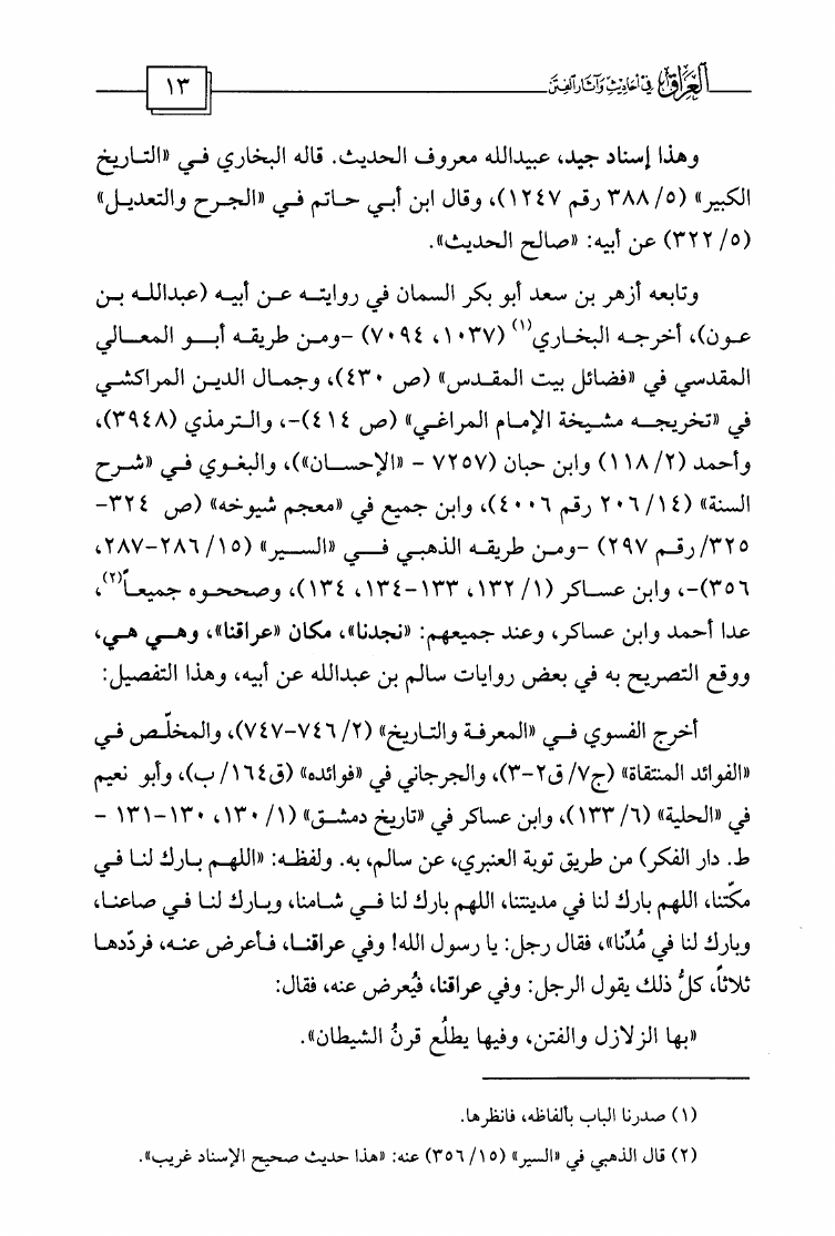 نام کتاب : العراق في أحاديث وآثار الفتن وفي آخره دراسة تأصيلية لظاهرة إسقاط الفتن على الوقائع وتقويم الدراسات الحديثة التي خاضت في ذلك وبيان مزالقها وانحرافها نویسنده : مشهور بن حسن آل سلمان ابو عبيدة جلد : 1 صفحه : 13
