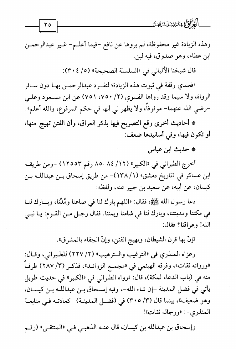 نام کتاب : العراق في أحاديث وآثار الفتن وفي آخره دراسة تأصيلية لظاهرة إسقاط الفتن على الوقائع وتقويم الدراسات الحديثة التي خاضت في ذلك وبيان مزالقها وانحرافها نویسنده : مشهور بن حسن آل سلمان ابو عبيدة جلد : 1 صفحه : 25