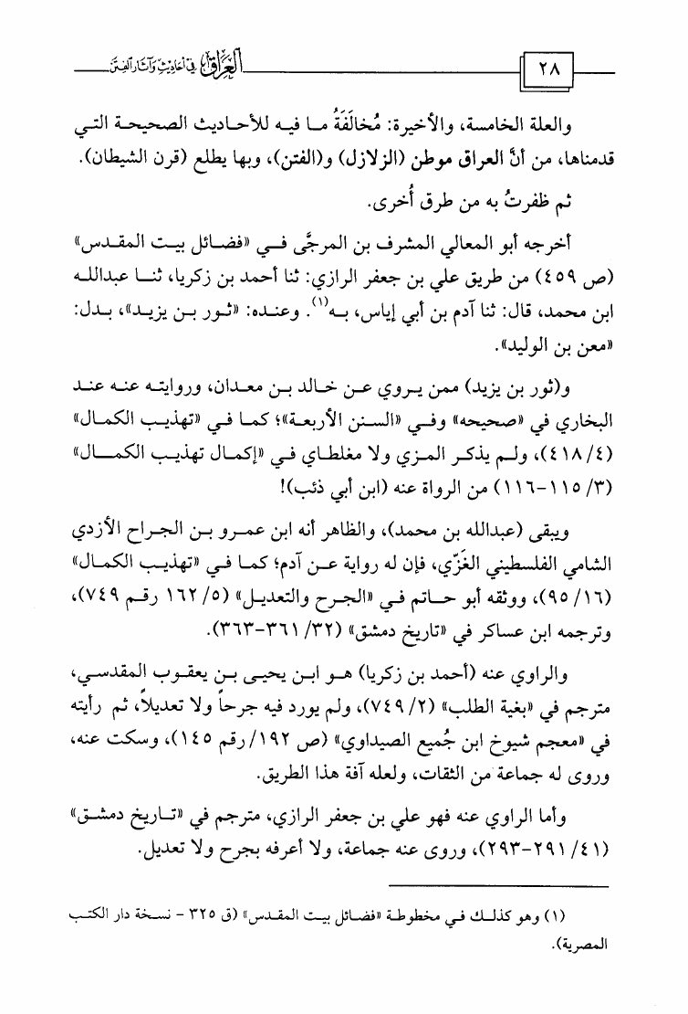 نام کتاب : العراق في أحاديث وآثار الفتن وفي آخره دراسة تأصيلية لظاهرة إسقاط الفتن على الوقائع وتقويم الدراسات الحديثة التي خاضت في ذلك وبيان مزالقها وانحرافها نویسنده : مشهور بن حسن آل سلمان ابو عبيدة جلد : 1 صفحه : 28