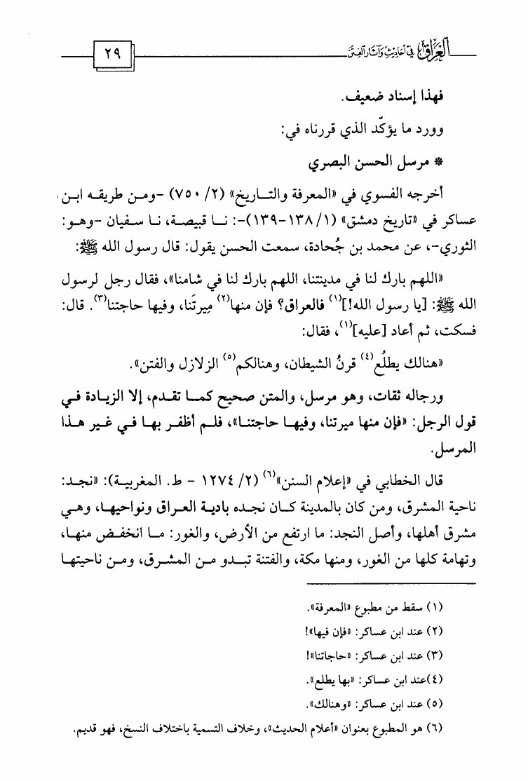 نام کتاب : العراق في أحاديث وآثار الفتن وفي آخره دراسة تأصيلية لظاهرة إسقاط الفتن على الوقائع وتقويم الدراسات الحديثة التي خاضت في ذلك وبيان مزالقها وانحرافها نویسنده : مشهور بن حسن آل سلمان ابو عبيدة جلد : 1 صفحه : 29