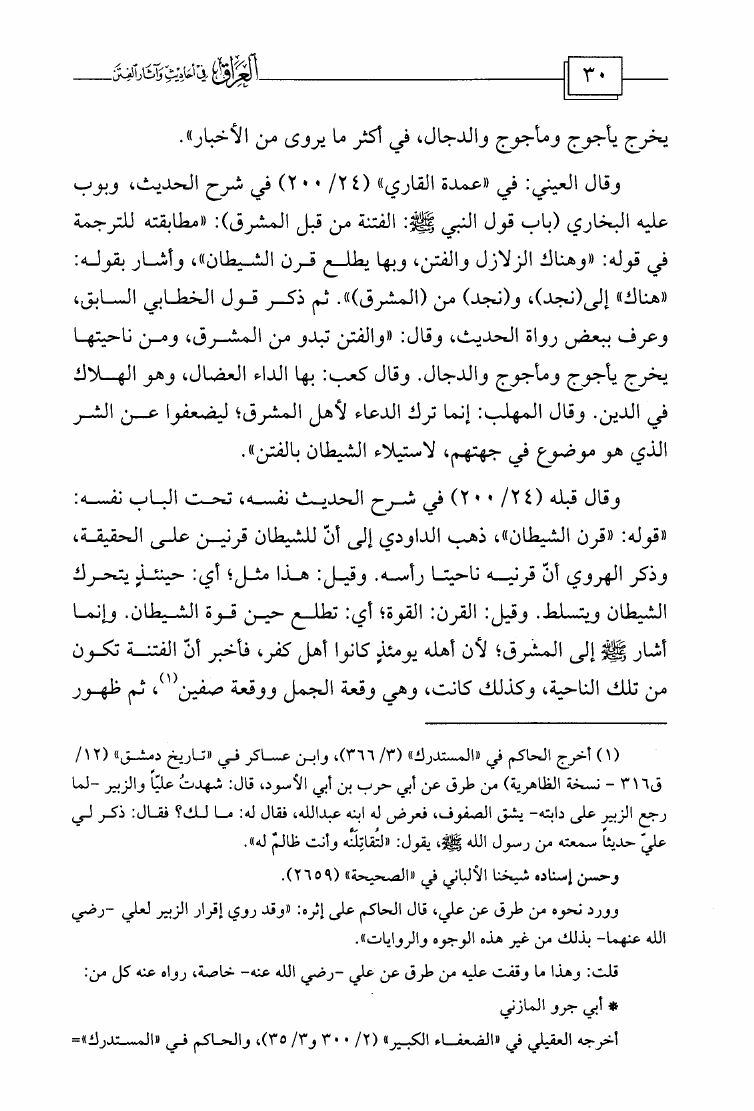 نام کتاب : العراق في أحاديث وآثار الفتن وفي آخره دراسة تأصيلية لظاهرة إسقاط الفتن على الوقائع وتقويم الدراسات الحديثة التي خاضت في ذلك وبيان مزالقها وانحرافها نویسنده : مشهور بن حسن آل سلمان ابو عبيدة جلد : 1 صفحه : 30