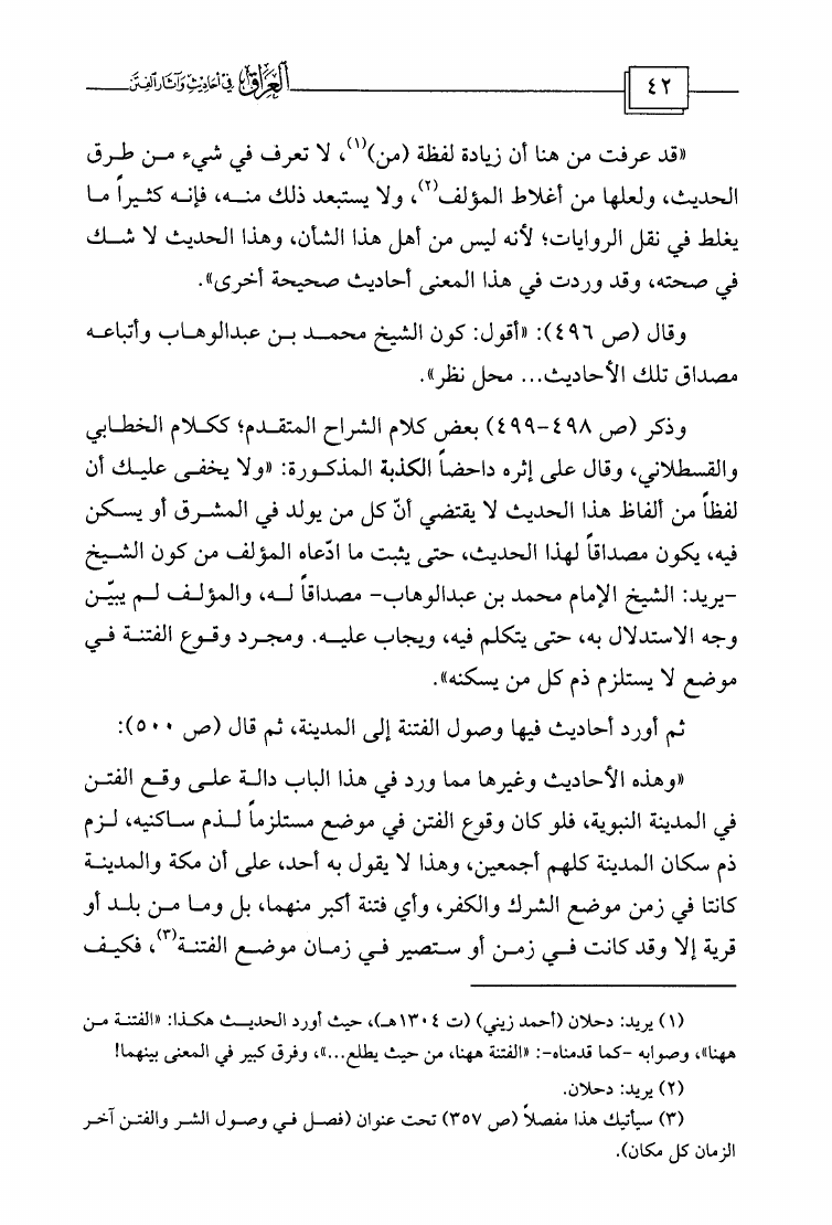 نام کتاب : العراق في أحاديث وآثار الفتن وفي آخره دراسة تأصيلية لظاهرة إسقاط الفتن على الوقائع وتقويم الدراسات الحديثة التي خاضت في ذلك وبيان مزالقها وانحرافها نویسنده : مشهور بن حسن آل سلمان ابو عبيدة جلد : 1 صفحه : 42