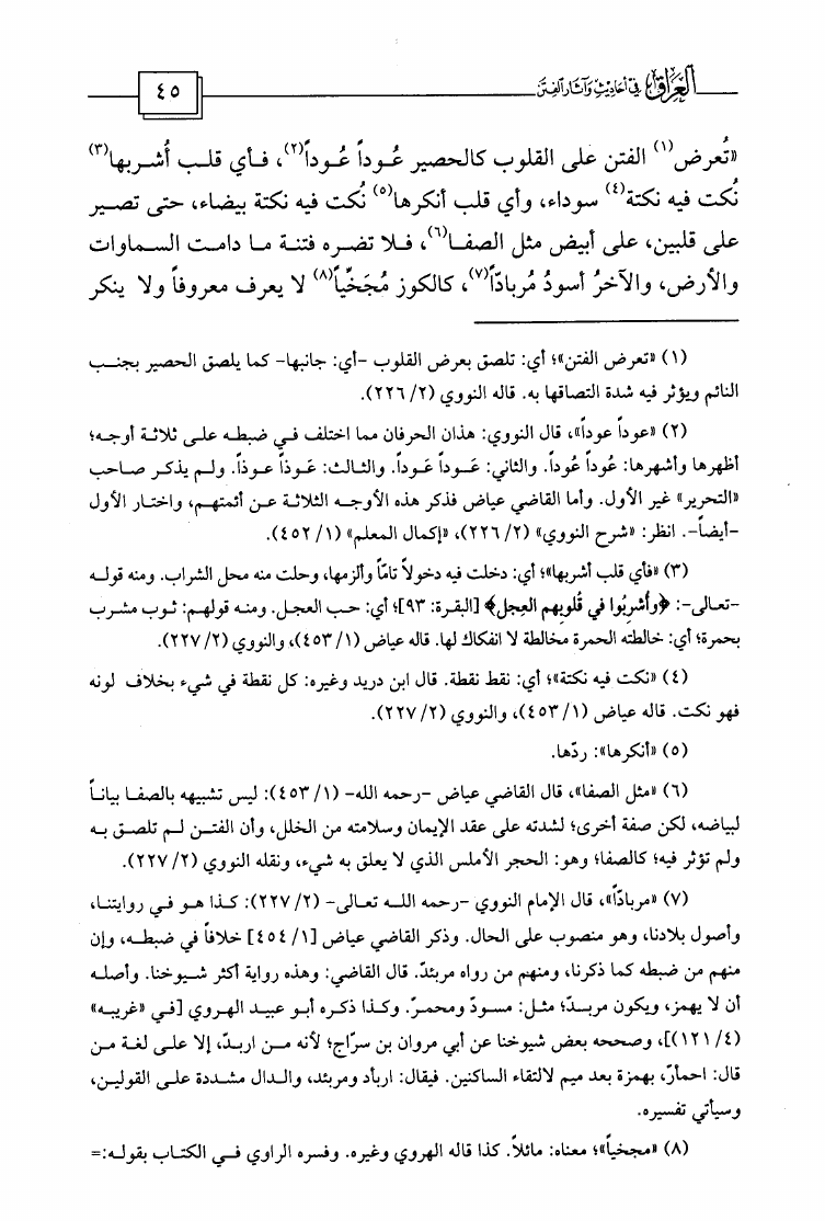 نام کتاب : العراق في أحاديث وآثار الفتن وفي آخره دراسة تأصيلية لظاهرة إسقاط الفتن على الوقائع وتقويم الدراسات الحديثة التي خاضت في ذلك وبيان مزالقها وانحرافها نویسنده : مشهور بن حسن آل سلمان ابو عبيدة جلد : 1 صفحه : 45