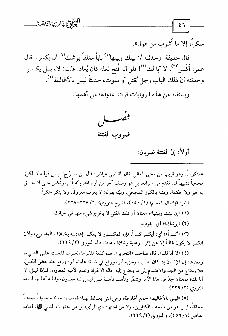 نام کتاب : العراق في أحاديث وآثار الفتن وفي آخره دراسة تأصيلية لظاهرة إسقاط الفتن على الوقائع وتقويم الدراسات الحديثة التي خاضت في ذلك وبيان مزالقها وانحرافها نویسنده : مشهور بن حسن آل سلمان ابو عبيدة جلد : 1 صفحه : 46