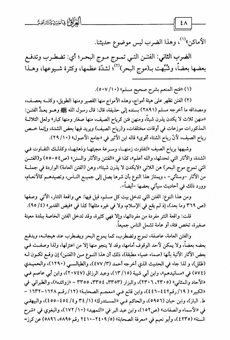نام کتاب : العراق في أحاديث وآثار الفتن وفي آخره دراسة تأصيلية لظاهرة إسقاط الفتن على الوقائع وتقويم الدراسات الحديثة التي خاضت في ذلك وبيان مزالقها وانحرافها نویسنده : مشهور بن حسن آل سلمان ابو عبيدة جلد : 1 صفحه : 48