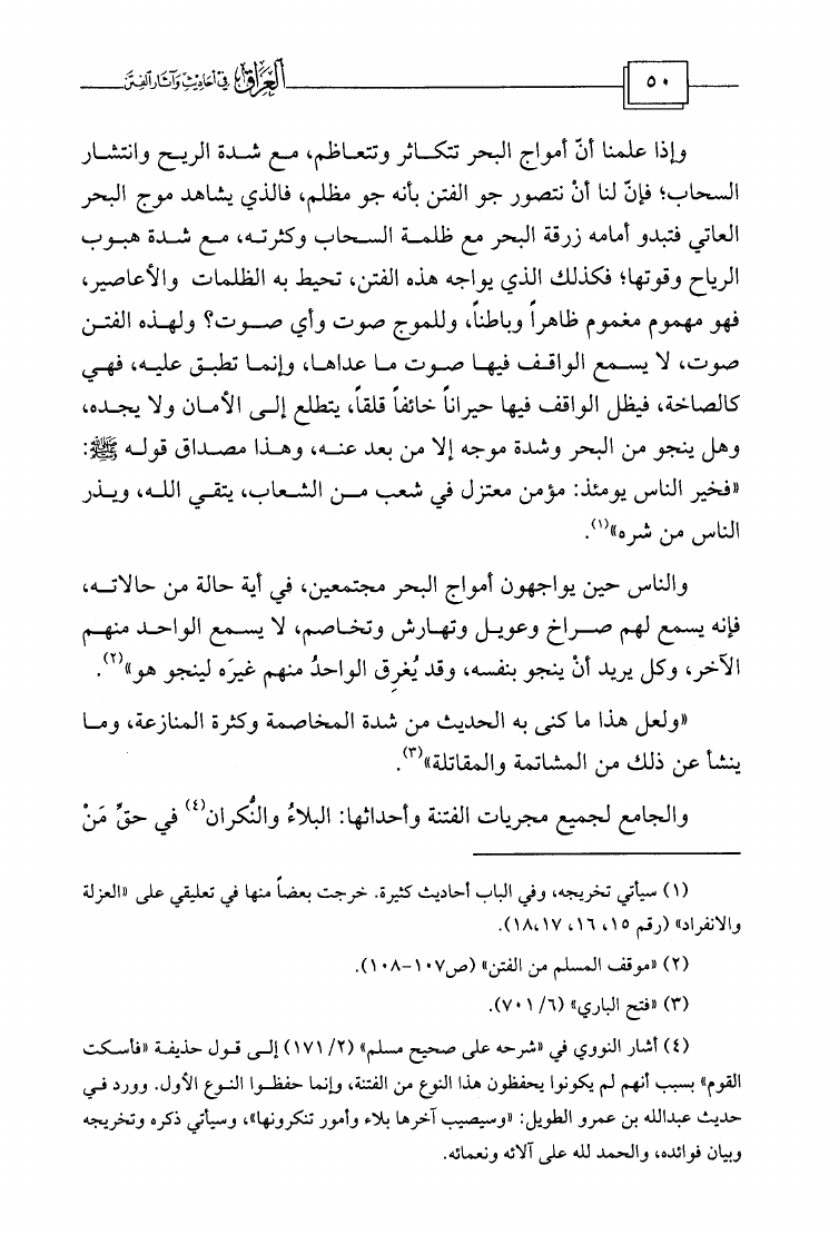 نام کتاب : العراق في أحاديث وآثار الفتن وفي آخره دراسة تأصيلية لظاهرة إسقاط الفتن على الوقائع وتقويم الدراسات الحديثة التي خاضت في ذلك وبيان مزالقها وانحرافها نویسنده : مشهور بن حسن آل سلمان ابو عبيدة جلد : 1 صفحه : 50
