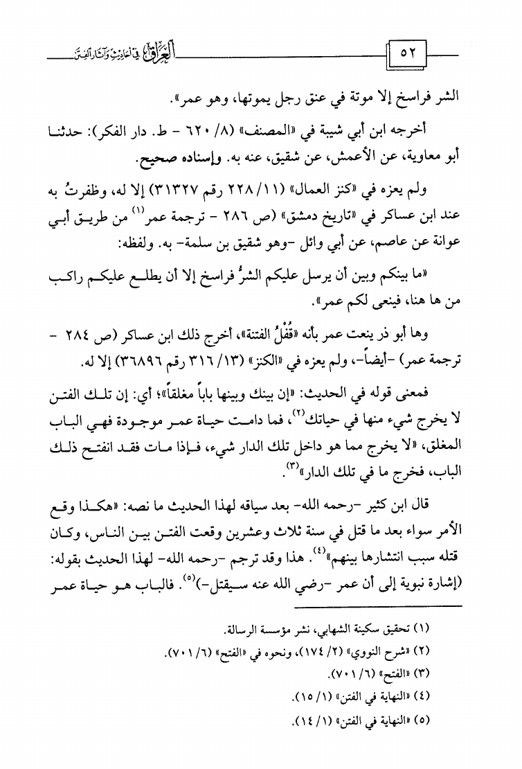 نام کتاب : العراق في أحاديث وآثار الفتن وفي آخره دراسة تأصيلية لظاهرة إسقاط الفتن على الوقائع وتقويم الدراسات الحديثة التي خاضت في ذلك وبيان مزالقها وانحرافها نویسنده : مشهور بن حسن آل سلمان ابو عبيدة جلد : 1 صفحه : 52