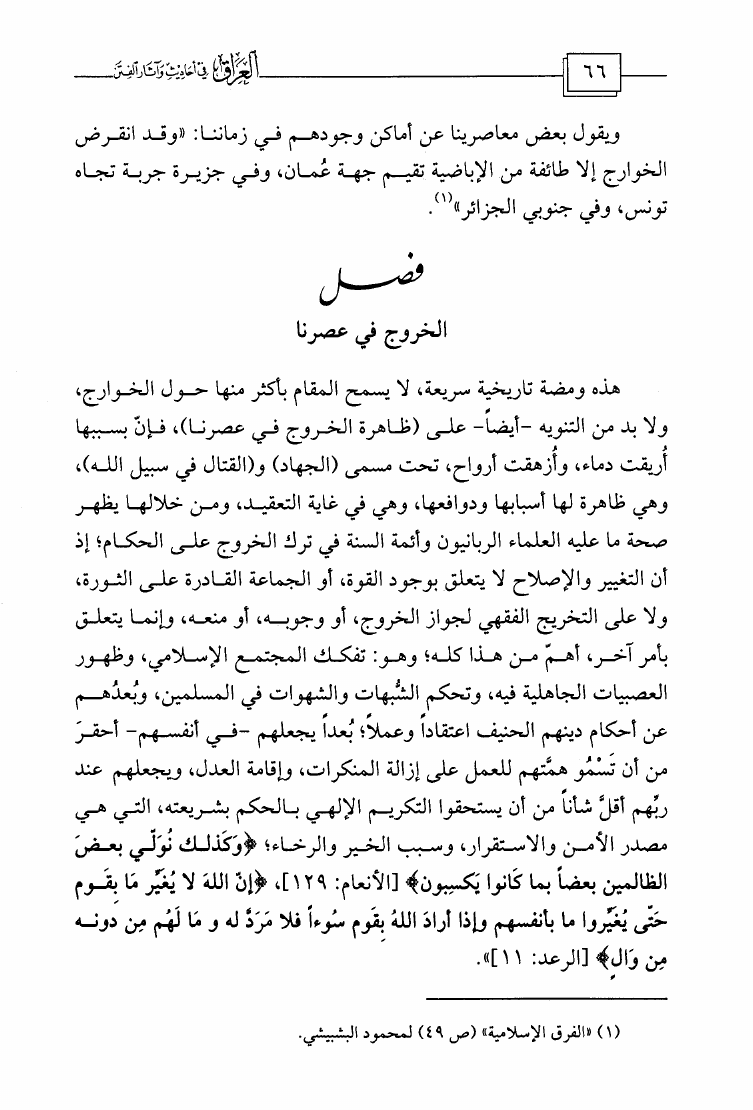 نام کتاب : العراق في أحاديث وآثار الفتن وفي آخره دراسة تأصيلية لظاهرة إسقاط الفتن على الوقائع وتقويم الدراسات الحديثة التي خاضت في ذلك وبيان مزالقها وانحرافها نویسنده : مشهور بن حسن آل سلمان ابو عبيدة جلد : 1 صفحه : 66