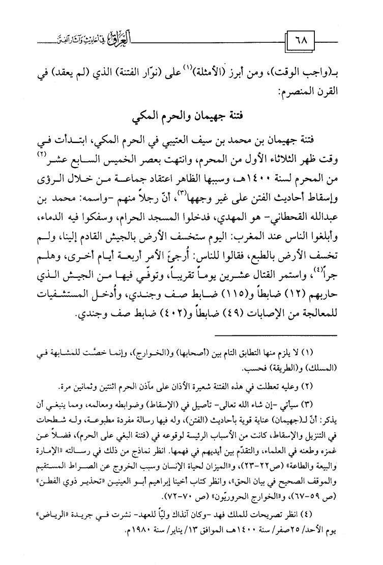 نام کتاب : العراق في أحاديث وآثار الفتن وفي آخره دراسة تأصيلية لظاهرة إسقاط الفتن على الوقائع وتقويم الدراسات الحديثة التي خاضت في ذلك وبيان مزالقها وانحرافها نویسنده : مشهور بن حسن آل سلمان ابو عبيدة جلد : 1 صفحه : 68