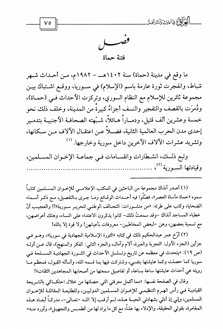 نام کتاب : العراق في أحاديث وآثار الفتن وفي آخره دراسة تأصيلية لظاهرة إسقاط الفتن على الوقائع وتقويم الدراسات الحديثة التي خاضت في ذلك وبيان مزالقها وانحرافها نویسنده : مشهور بن حسن آل سلمان ابو عبيدة جلد : 1 صفحه : 75
