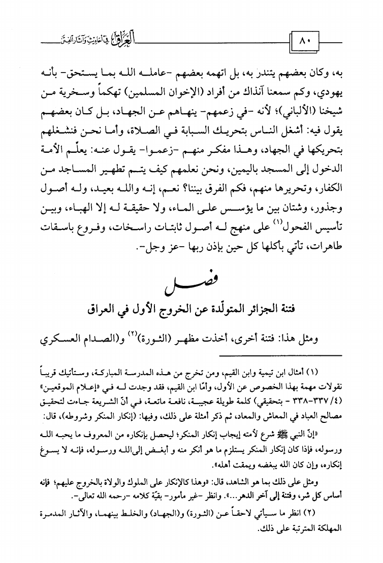 نام کتاب : العراق في أحاديث وآثار الفتن وفي آخره دراسة تأصيلية لظاهرة إسقاط الفتن على الوقائع وتقويم الدراسات الحديثة التي خاضت في ذلك وبيان مزالقها وانحرافها نویسنده : مشهور بن حسن آل سلمان ابو عبيدة جلد : 1 صفحه : 80
