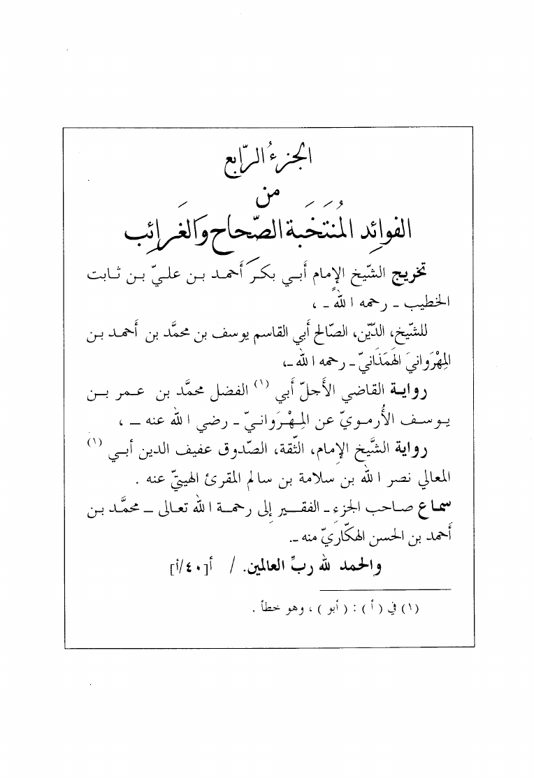 يوسف أحمد الهمذاني أبو القاسم - أحمد بن علي بن ثابت الخطيب البغدادي أبو بكر