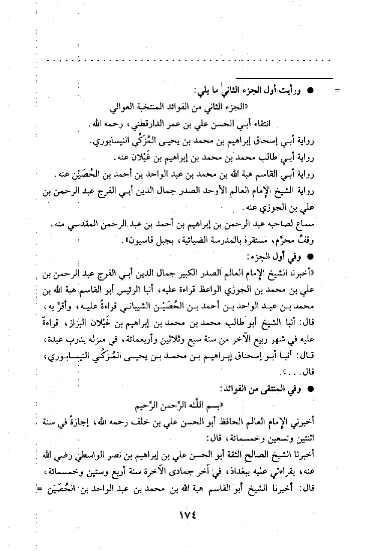 نام کتاب : المزكيات وهي الفوائد المنتخبة الغرائب العوالي من حديث أبي إسحاق إبراهيم بن محمد بن يحي المزكي النيسابوري نویسنده : علي بن عمر الدارقطني أبو الحسن جلد : 1 صفحه : 174