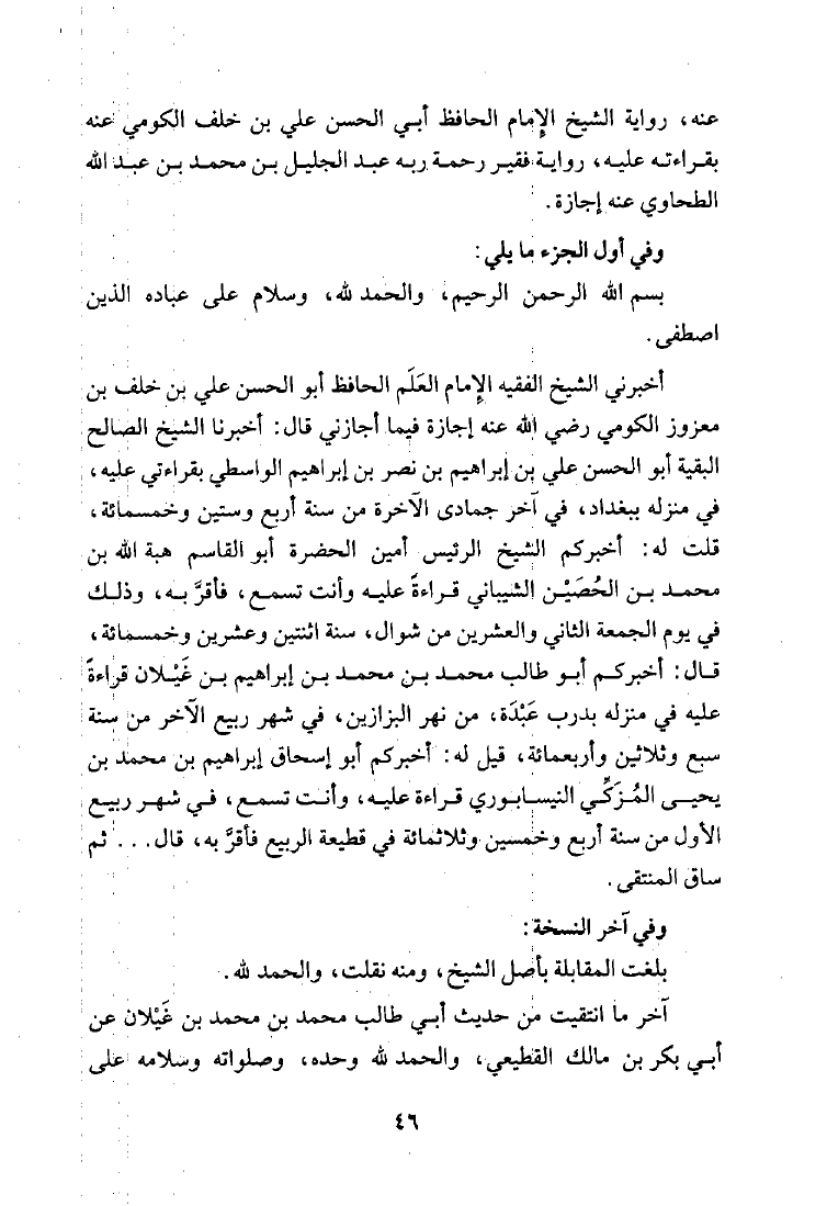 نام کتاب : المزكيات وهي الفوائد المنتخبة الغرائب العوالي من حديث أبي إسحاق إبراهيم بن محمد بن يحي المزكي النيسابوري نویسنده : علي بن عمر الدارقطني أبو الحسن جلد : 1 صفحه : 46