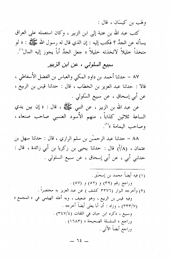 المعجم الكبير (معجم الطبراني الكبير) - قطعة من مسانيد من اسمه عبد الله