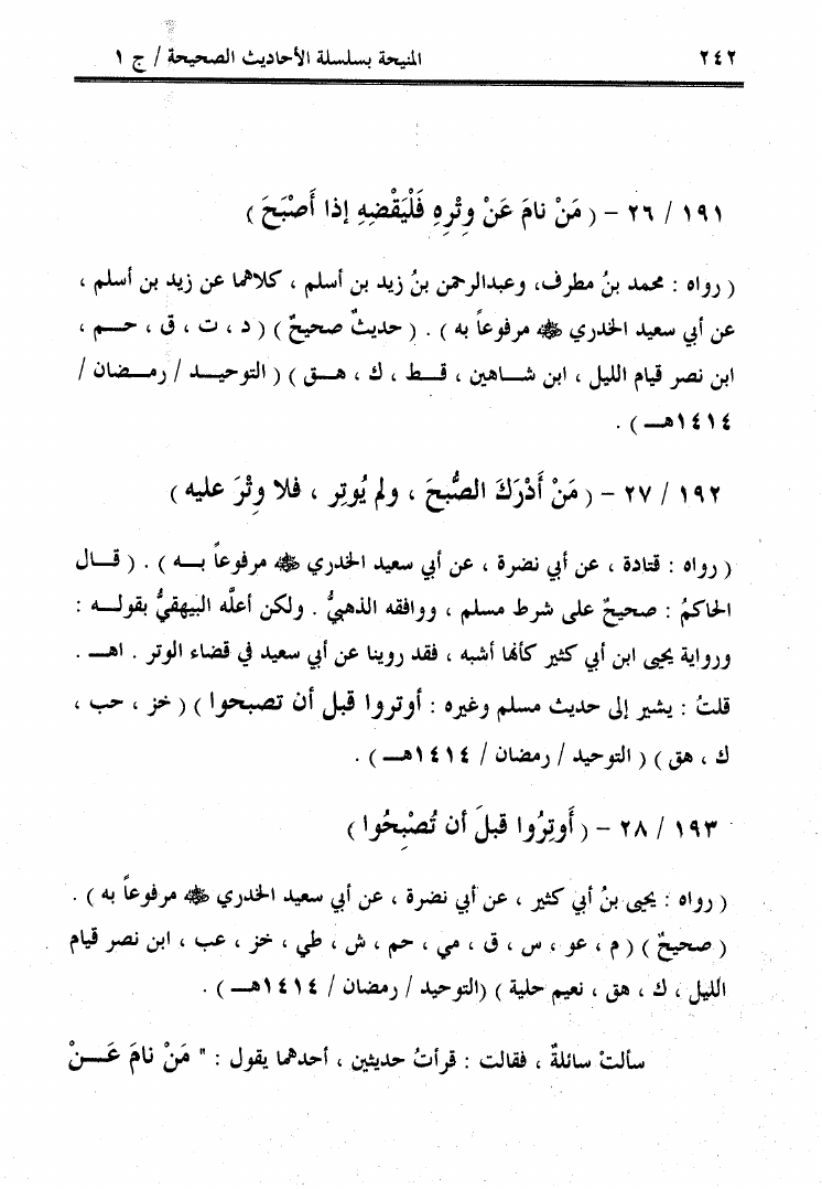 المنيحة بسلسلة الأحاديث الصحيحة التي خرجها أبو إسحاق الحويني
