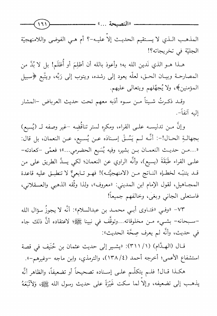 النصيحة بالتحذير من تخريب ابن عبد المنان لكتب الأئمة الرجيحة
