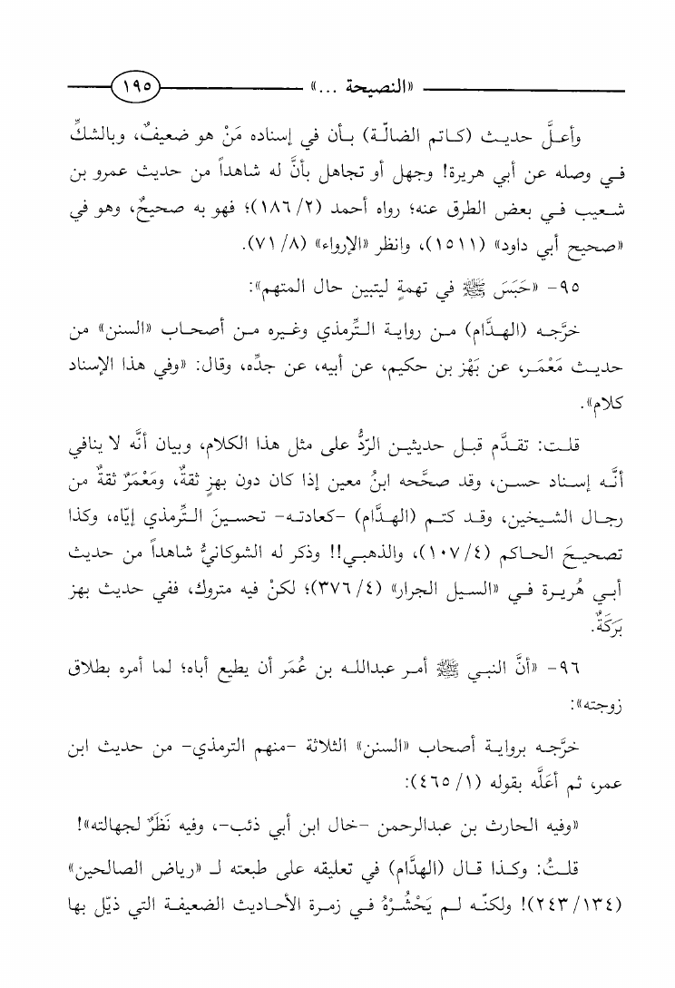النصيحة بالتحذير من تخريب ابن عبد المنان لكتب الأئمة الرجيحة