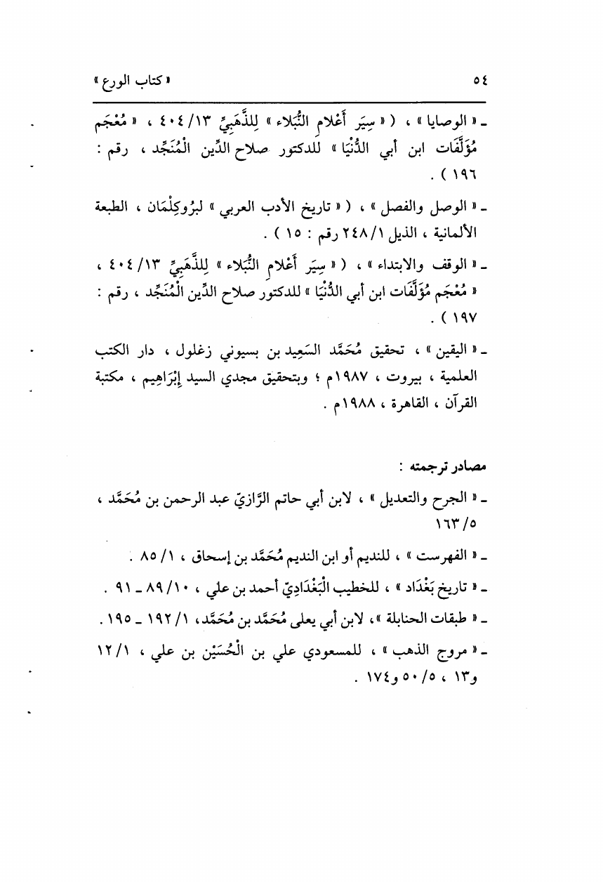 عبد الله محمد عبيد البغدادي أبو بكر ابن أبي الدنيا